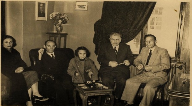 In the photograph given to me by the late Skamagkis appear his wife Sarita (Angeliki), their daughter, himself, the father of Konstantinos Tsigas, Ioannis, and Konstantinos Kyriakidis, father of my professor Menelaos Kyriakidis. The photograph of the Skamagkis family is kept in the Mayor’s Office at the Municipality of Kavala, on the side facing the Megali Leschi, from the period when the window there was open. On the wall, one can see a photograph of Mayor Athanasios Balanos. It dates from the time when Athanasios Vavaleskos had been elected mayor of the city.